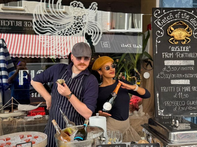 Various restaurants had set up stalls outside their premises displaying everything from Cornish oysters to sea food pasta.